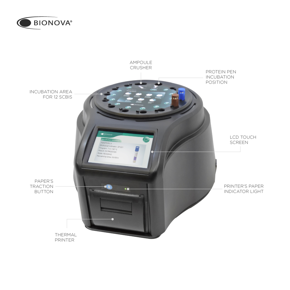 Incubadora con lector automático y pantalla LCD de 12+1 posiciones.
